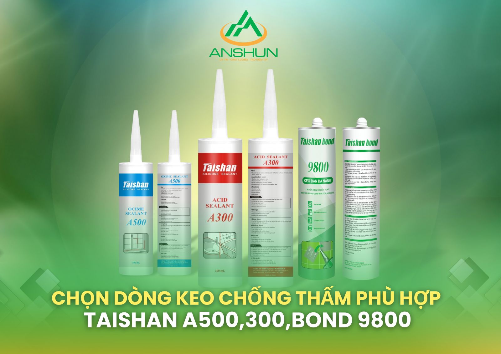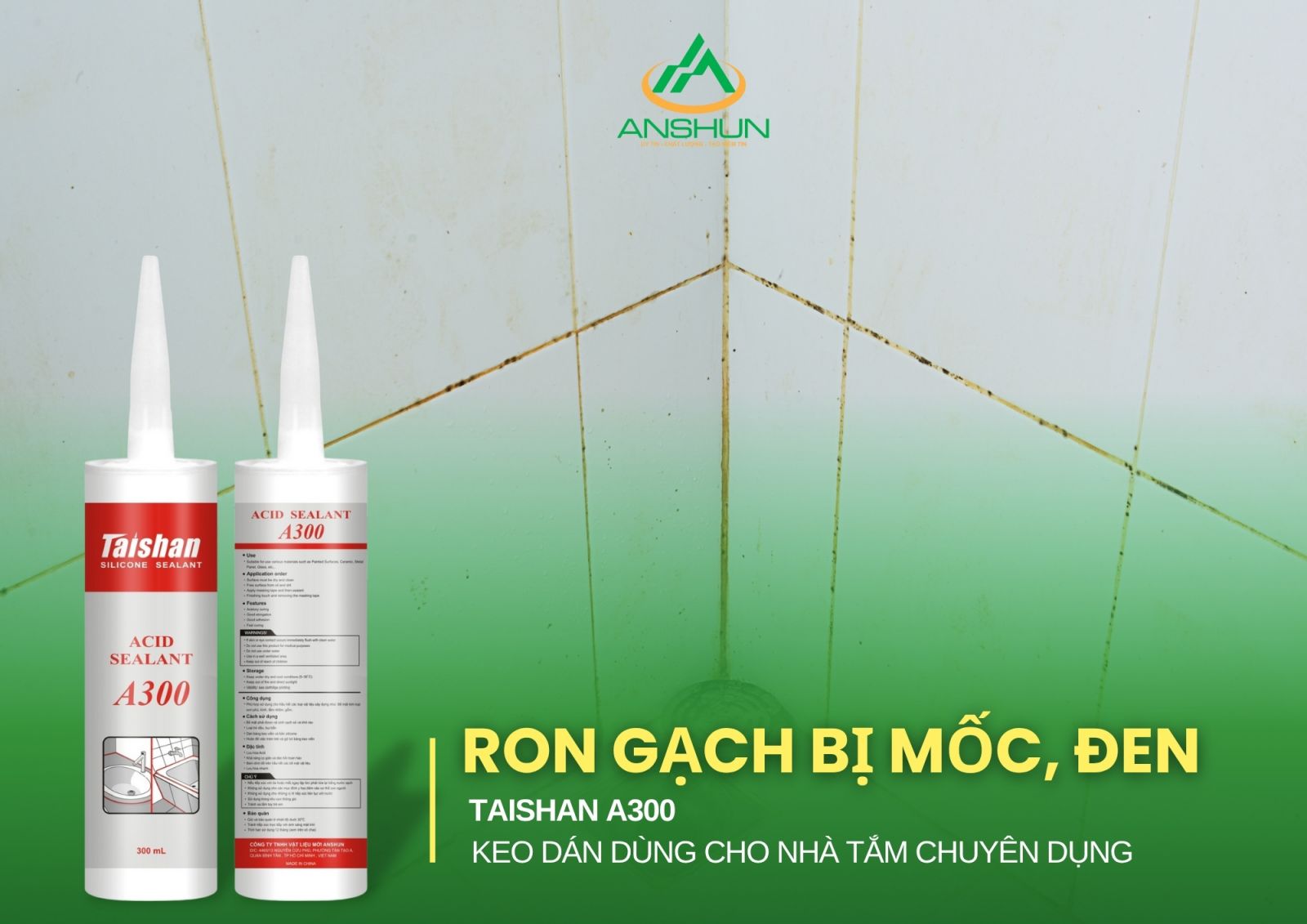 Taishan A300 – Keo silicone trung tính chuyên dụng cho nhà tắm, bồn rửa, khu vực ẩm ướt. Sở hữu phụ gia chống nấm mốc, độ bám dính cao và khả năng chịu ẩm vượt trội.