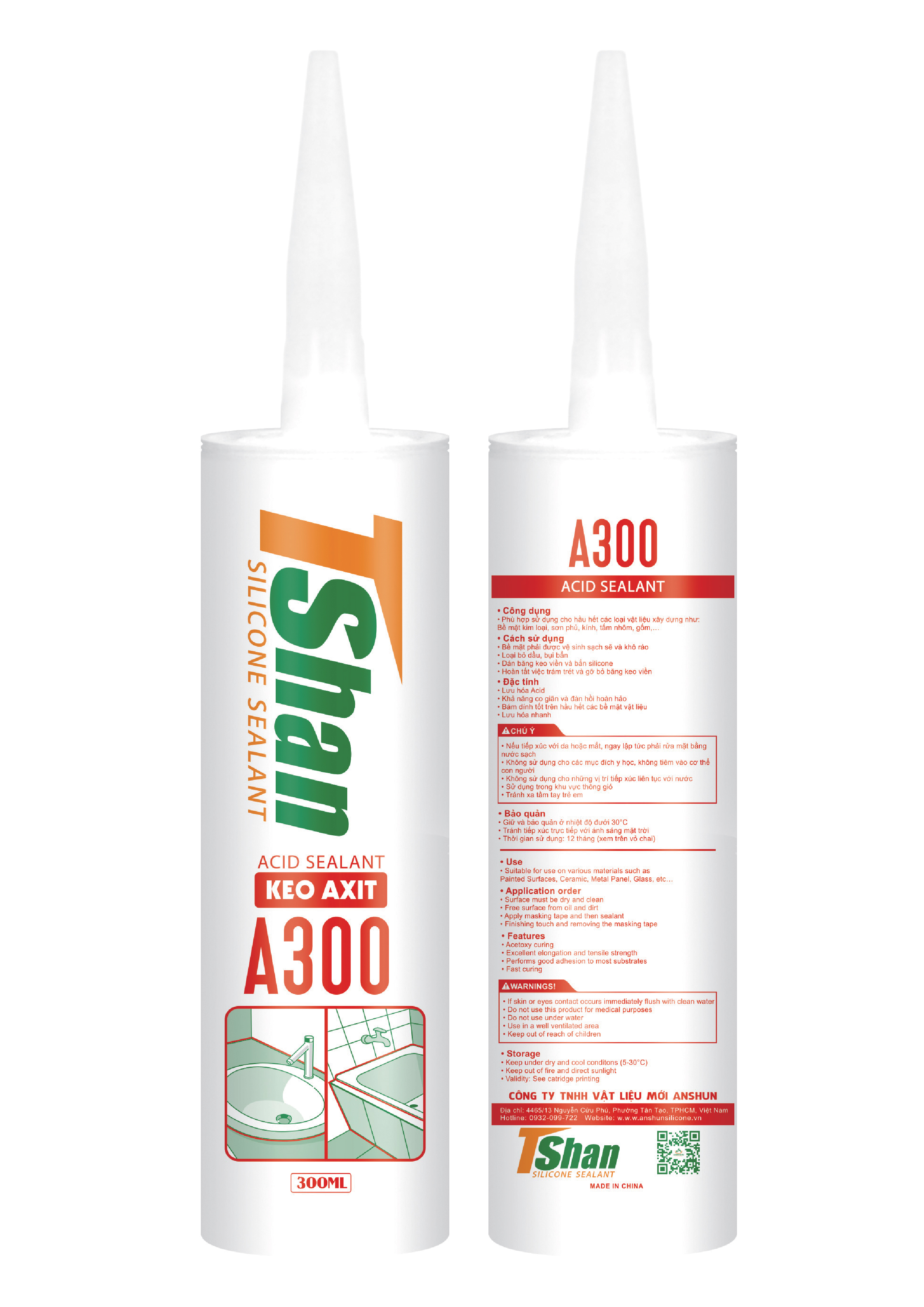 Keo silicone sealant Taishan A300 là chất lưu hóa axit một thành phần có thể dễ dàng ứng dụng trong bất kỳ thời tiết nào. Sản phẩm lưu hóa ở nhiệt độ phòng khi tương tác với độ ẩm trong không khí để tạo ra một liên kết cao su silicone có kết cấu bền vững và linh hoạt. Khả năng lưu hóa hoàn toàn nhanh.